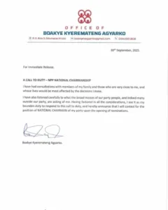 The announcement comes at a critical time as the NPP prepares for internal elections ahead of the 2028 general elections.