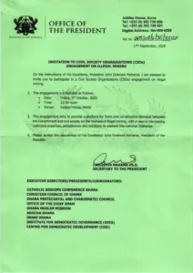 The meeting invitation, signed by Dr. Callistus Mahama, Secretary to the President, highlights the importance of fostering “frank and constructive dialogue” between the government and civil society, with the ultimate goal of harnessing collective expertise to tackle the national crisis.