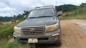 During the operation, the team encountered ongoing unauthorized mining activities along the Tano River, where a Toyota Land Cruiser V8 with registration number GR 442-14 was seen fleeing the area. Two Chinese nationals were taken into custody, while a third suspect, presumed to be Ghanaian, evaded capture.