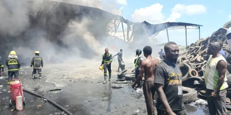 The fire, which involved industrial ovens used for extracting pyrolysis oil from tyres, broke out at approximately 11:04 a.m. Four fire tenders from the Gbetsile, Devtraco, Tema Metro, and Motorway Fire Stations responded swiftly to the incident, effectively preventing the fire from spreading.