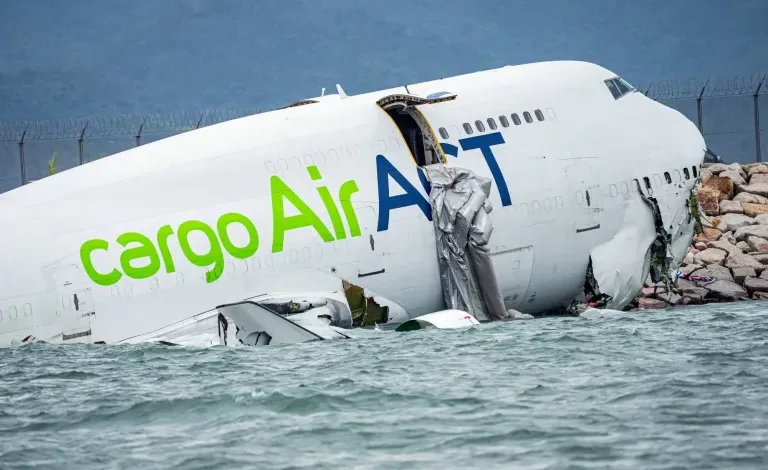 Two dead after cargo plane skids off Hong Kong runway into sea