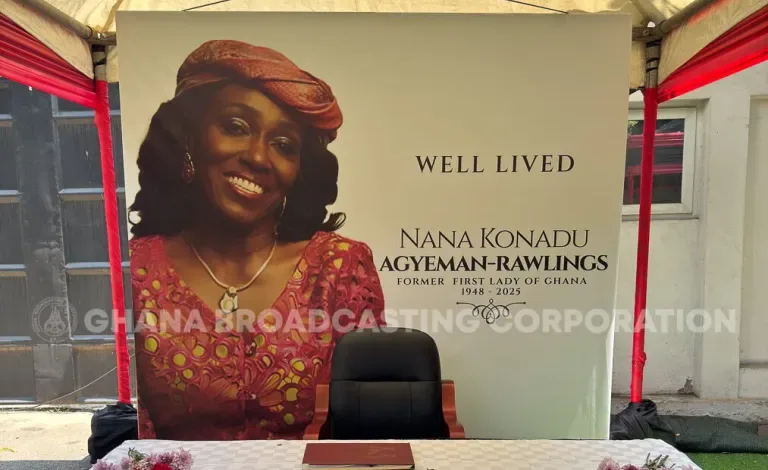 A book of condolence has been opened for the former First Lady of Ghana, Nana Konadu Agyeman-Rawlings, following her passing, allowing government officials, political leaders, and members of the public to pay their respects to the late Ghanaian stateswoman.