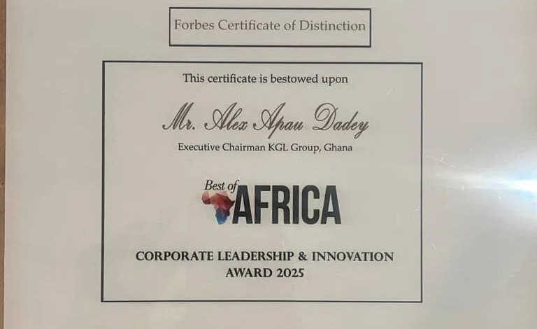 KGL Group Chairman, Alex Apau Dadey Honored with Forbes Best of Africa Corporate Leadership & Innovation Award
