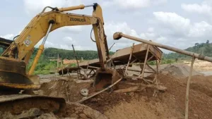 During the NAIMOS raids, several metallic gold trapping platforms used by the illegal miners were pulled down while three (3) heavy duty water pumping machines were destroyed to incapacitate the nefarious activities of the illegal miners.