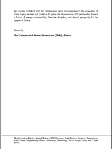 “The IPGs reaffirm our unwavering commitment to Ghana’s energy security, economic transformation, and industrial development,” pledging full cooperation with government and sector agencies to ensure reliable power supply and support ongoing reforms.