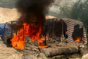 The operation led to the destruction of several chanfang machines, makeshift structures, and other equipment. Investigations revealed that many miners were foreign nationals, mainly from Burkina Faso, who used hazardous chemicals like cyanide to extract gold, posing significant environmental and public health risks.