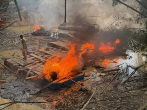 Subsequently, the joint task force proceeded to dismantle and destroy all equipment found at the site. In total, seventy-five (75) dredging Changfang platforms and fifty (50) gold washing platforms were destroyed.
