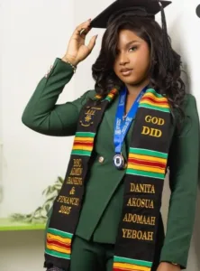 Afronitaaa, a talented Ghanaian dancer, has graduated from the University of Ghana with a Bachelor of Science degree in Administration, specializing in Banking and Finance, in 2025.
