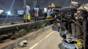 A fatal road traffic accident occurred on the N1 highway near the Fiesta Royale Hotel in Accra on Monday, February 23, resulting in the loss of two lives and nineteen injuries.