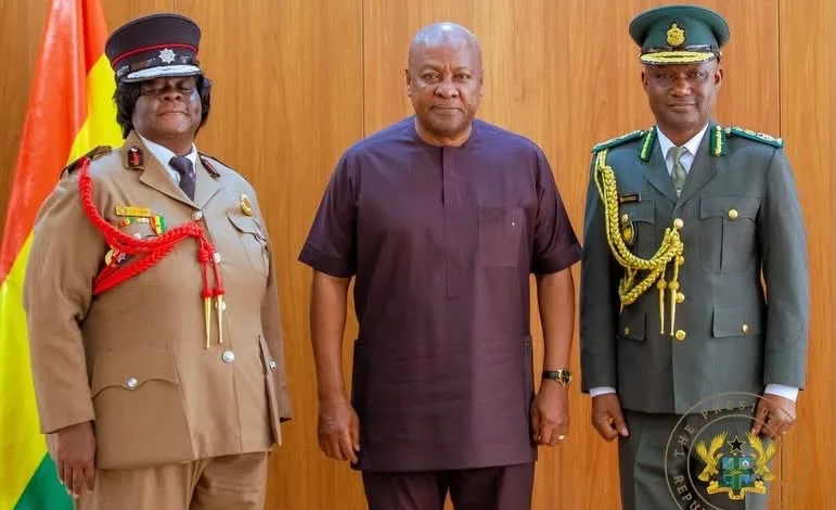 President John Dramani Mahama has presided over the swearing-in ceremony of Daniella Mawusi Ntow Sarpong as the substantive Chief Fire Officer and Samuel Basintale Amadu as Comptroller-General of the Ghana Immigration Service at the Presidency.