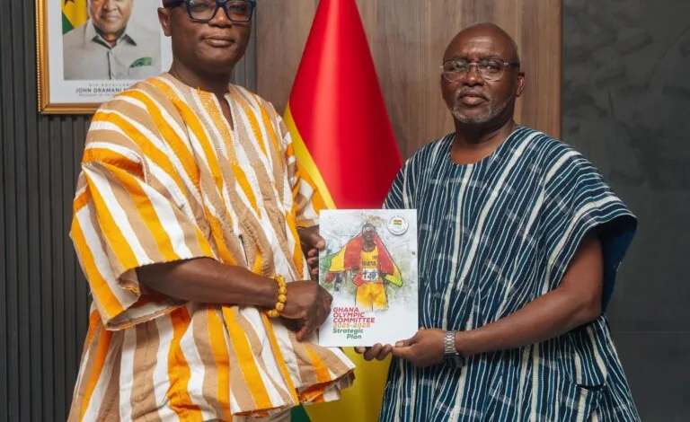 The leadership of the Ghana Olympic Committee (GOC) has met with the Minister for Sports and Recreation, Hon. Kofi Iddie Adams, to present a comprehensive four-year strategic plan (2025–2029), aimed at a sustainable sports success.