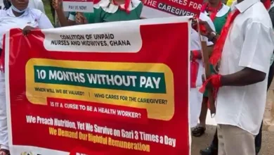 The Coalition of Unpaid Nurses and Midwives staged a protest on Thursday, October 2, 2025, to demand the settlement of…